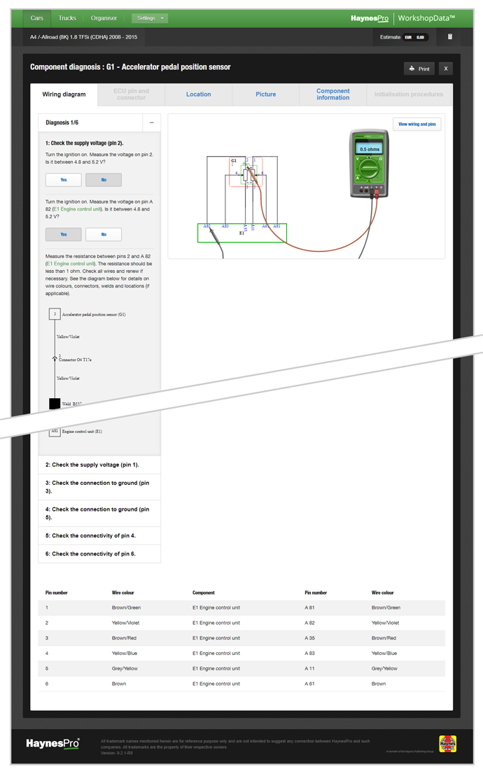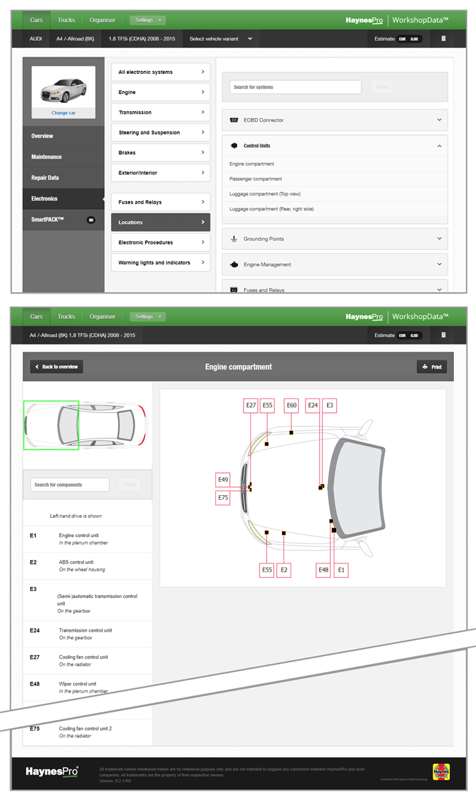 One of our goals is to help our customers reduce their unbillable hours. This means minimising the time spent on searching for ground points, control units or the EOBD connector location. HaynesPro’s electronic data speeds up this process by offering direct links to such locations.